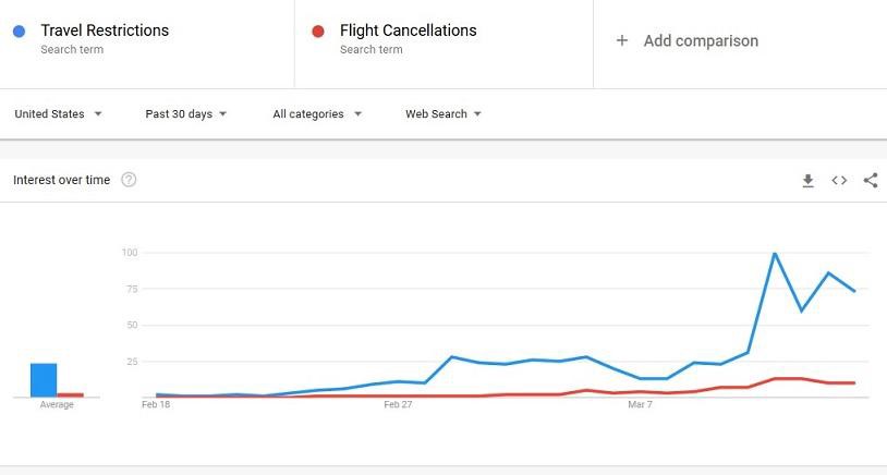 En especial porque no solo están siendo menos efectivos los anuncios, sino que las búsquedas de cancelación de viajes y restricciones de viajes están en su punto más alto.